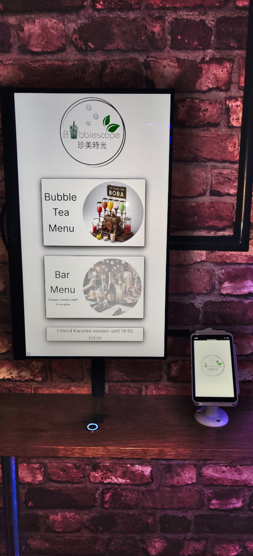 Our private karaoke booth/party room is great fun for groups of all ages. Whether it's a mid afternoon bubble tea party or after work cocktails everyone is catered for. All drinks can be ordered from the in room kiosk and will be delivered to you. We have lighting effects and a light up floor to create a party atmosphere. The extensive song libary from Karafun has over 60,000 songs, all guests can add their song to the playlist from their phones.